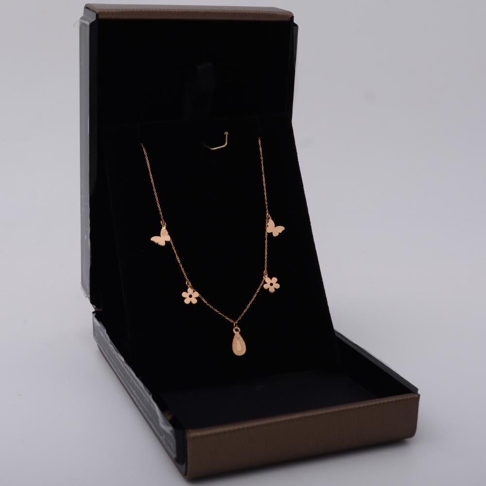 بتصميم فخم، ولافت، وطول أنيق ينساب على الرقبة بكل تألق. تفاصيله الهادئة تجمع بين الرقي والفخامة، لتكملي إطلالتك بأسلوب استثنائي ومختلف. ✨