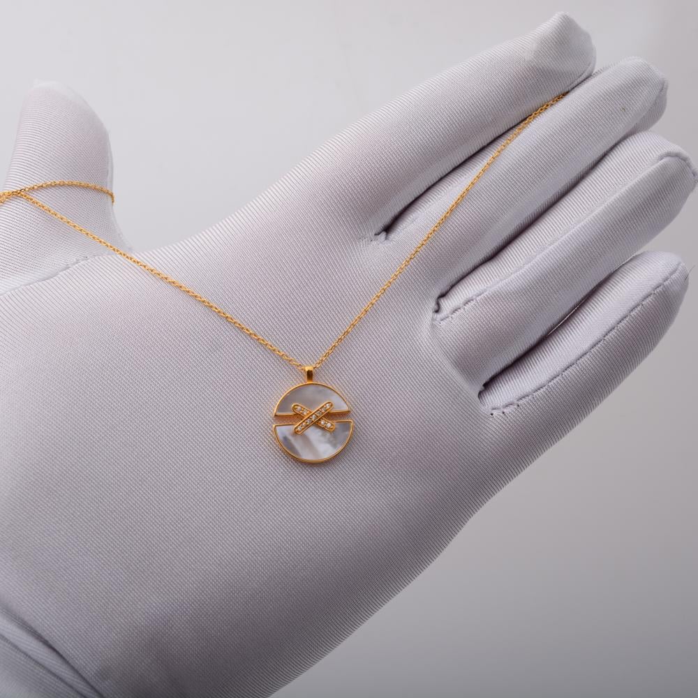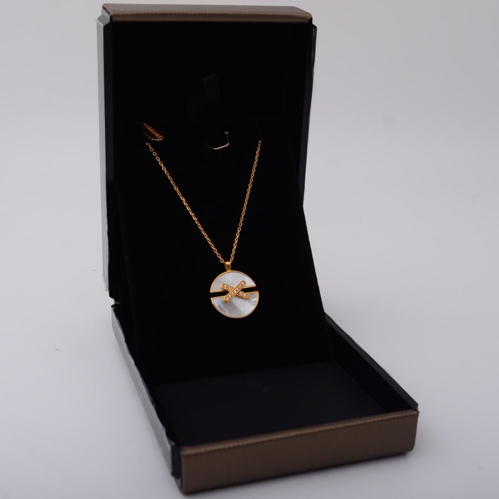 بتصميم فخم، ولافت، وطول أنيق ينساب على الرقبة بكل تألق. تفاصيله الهادئة تجمع بين الرقي والفخامة، لتكملي إطلالتك بأسلوب استثنائي ومختلف. ✨