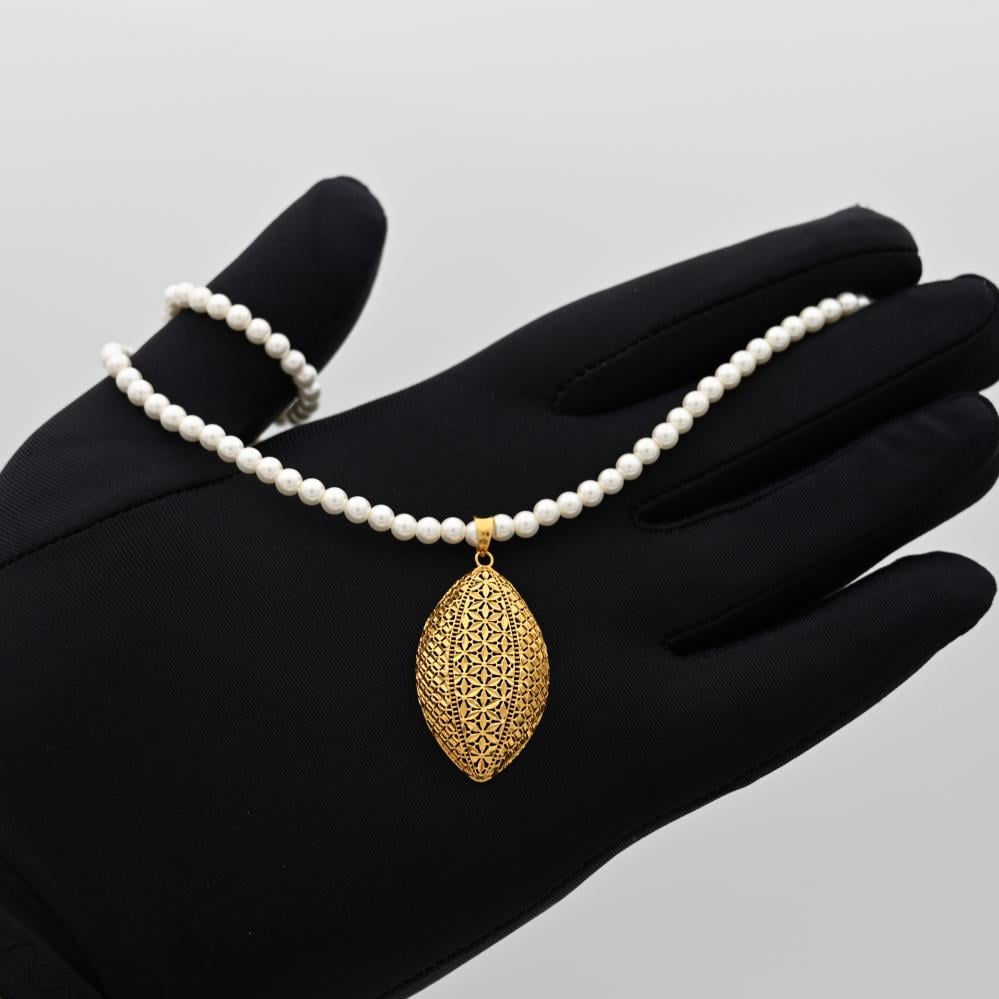 بتصميم فخم، ولافت، وطول أنيق ينساب على الرقبة بكل تألق. تفاصيله الهادئة تجمع بين الرقي والفخامة، لتكملي إطلالتك بأسلوب استثنائي ومختلف. ✨