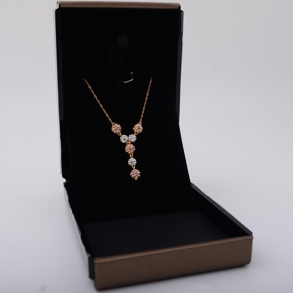 بتصميم فخم، ولافت، وطول أنيق ينساب على الرقبة بكل تألق. تفاصيله الهادئة تجمع بين الرقي والفخامة، لتكملي إطلالتك بأسلوب استثنائي ومختلف. ✨