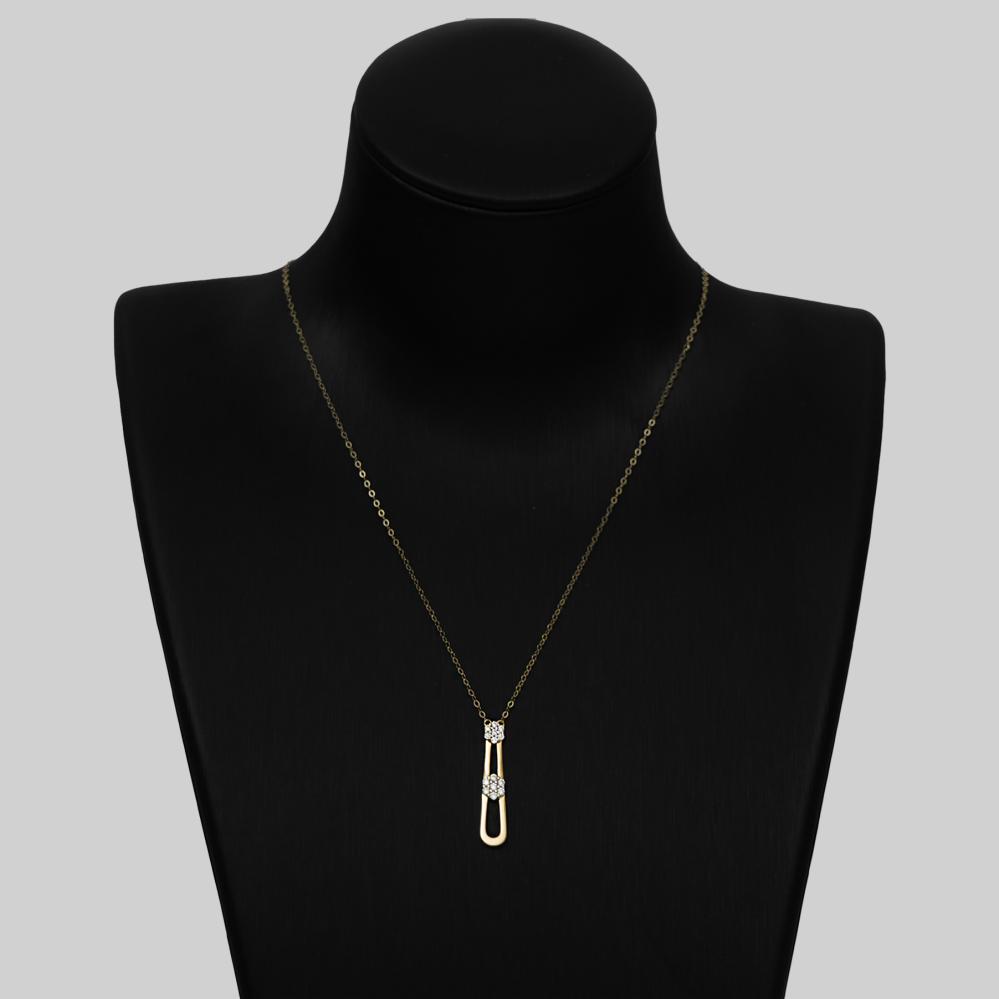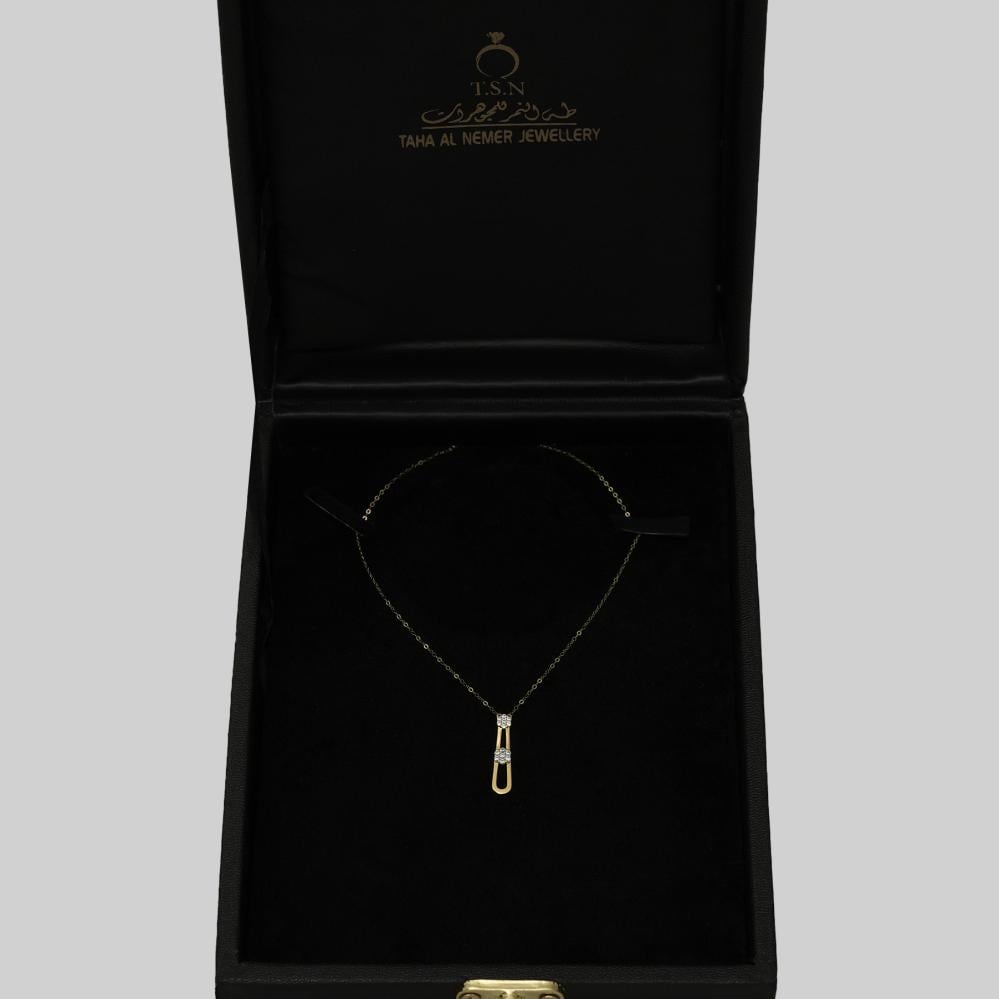 • عقد ذهب عيار 18 بتصميم مستطيل أنيق مرصع بالزركون
