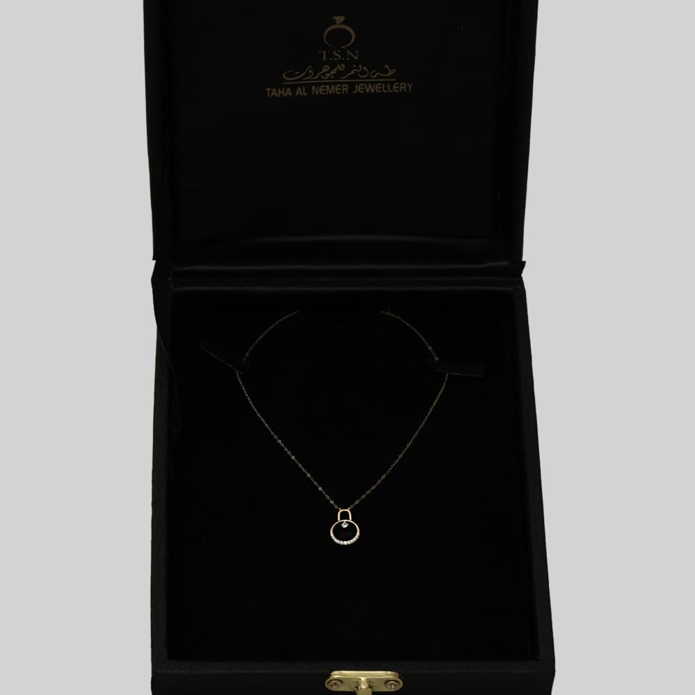 - عقد ذهب عيار 18 بتصميم دائري أنيق مرصع بلمسات براقة