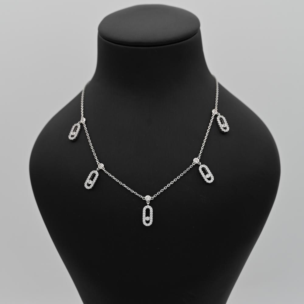 بتصميم فخم، ولافت، وطول أنيق ينساب على الرقبة بكل تألق. تفاصيله الهادئة تجمع بين الرقي والفخامة، لتكملي إطلالتك بأسلوب استثنائي ومختلف. ✨