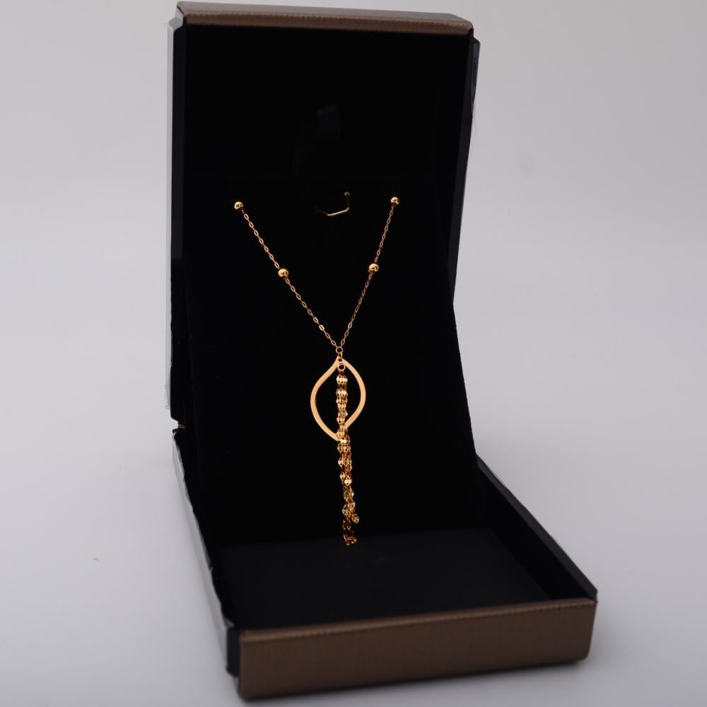 بتصميم فخم، ولافت، وطول أنيق ينساب على الرقبة بكل تألق. تفاصيله الهادئة تجمع بين الرقي والفخامة، لتكملي إطلالتك بأسلوب استثنائي ومختلف. ✨