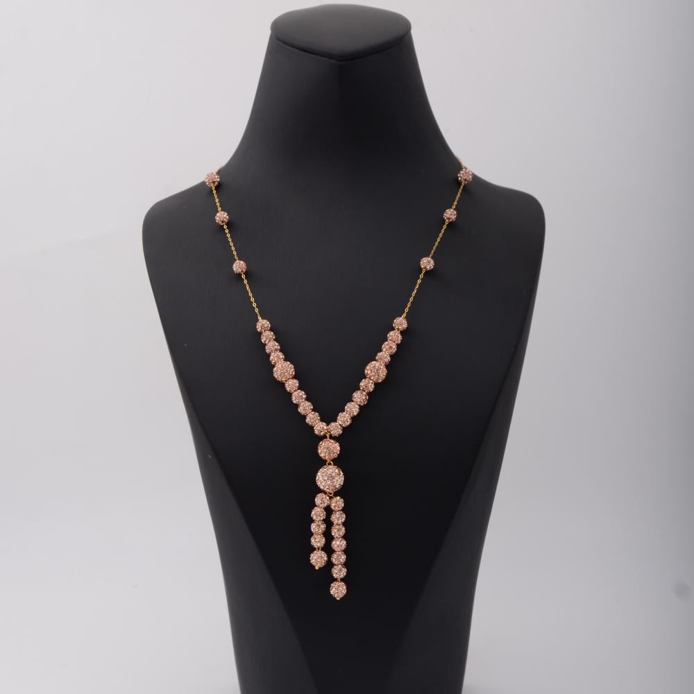 بتصميم فخم، ولافت، وطول أنيق ينساب على الرقبة بكل تألق. تفاصيله الهادئة تجمع بين الرقي والفخامة، لتكملي إطلالتك بأسلوب استثنائي ومختلف. ✨
