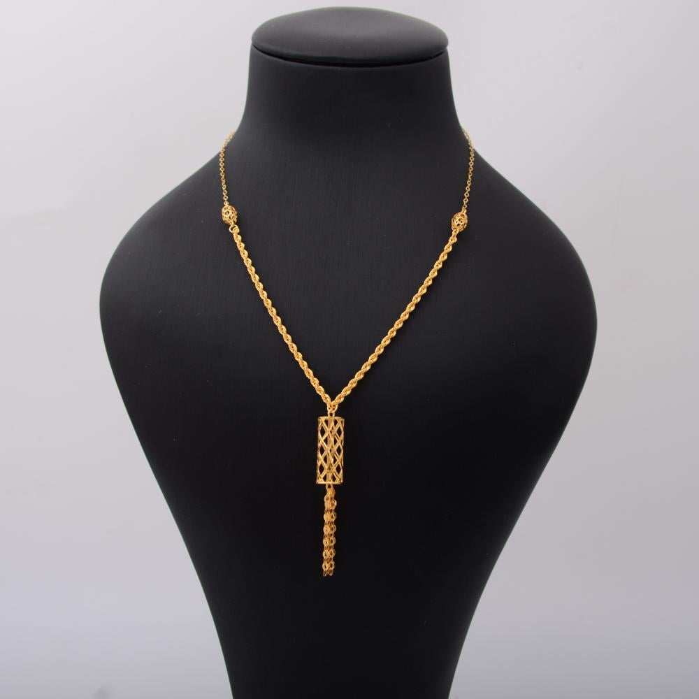 بتصميم فخم، ولافت، وطول أنيق ينساب على الرقبة بكل تألق. تفاصيله الهادئة تجمع بين الرقي والفخامة، لتكملي إطلالتك بأسلوب استثنائي ومختلف. ✨