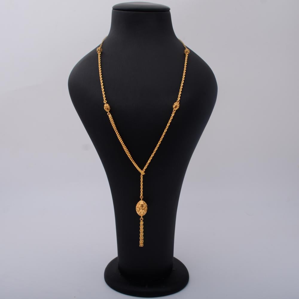 بتصميم فخم، ولافت، وطول أنيق ينساب على الرقبة بكل تألق. تفاصيله الهادئة تجمع بين الرقي والفخامة، لتكملي إطلالتك بأسلوب استثنائي ومختلف. ✨
